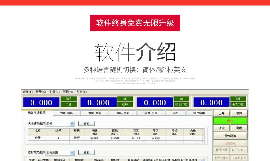 產品型號:JQ-8950 品牌:劍 喬 用途:本系列機廣泛用于各類薄膜、五金、橡膠料、紡織、建材、絕緣體、電線、電纜、端子等各類材料。測試其拉伸、撕裂、穿刺、剝離、抗壓、彎曲、抗剪切、定荷重、定位移、三點抗折